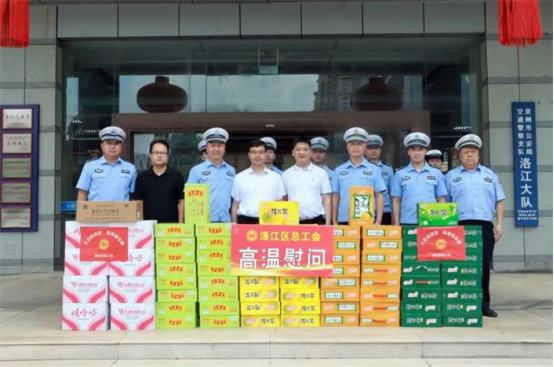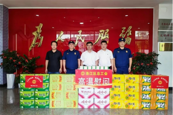慰問組先后前往武警機動中隊、洛江區消防救援大隊、洛江交警大隊、洛江公安分局、泉州高速公路支隊一大隊以及省市重點項目等地,走訪慰問戶外執勤民警、消防員、交警、建筑工人、環衛工人等高溫工作者,對他們不懼高溫、忠誠履職的工作熱情和辛勤付出表示衷心感謝,叮囑他們加強自身安全防護,注意防暑降溫,并送上藿香正氣水、涼茶等慰問品。
